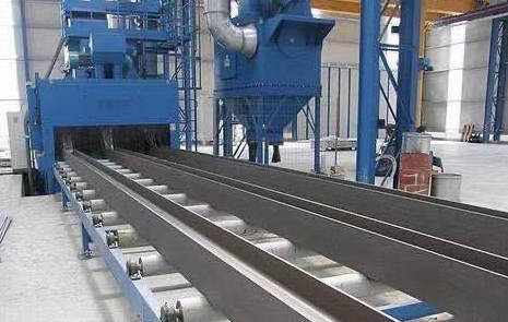 钢结构轨道通过式除锈机主要由抛丸器、耐磨橡胶环带、绞龙、提升、分离器、进料输送、除尘机、清理机械组合而成。目前已被很多行业广泛采用。功能技术含量较高,可设计pc控制及电器自动控制,具有自动监控,自动保护及无级变频调速等装置。可达到一机多用的目的。其主要原理摒弃了压缩空气作动力作法,采用抛丸器、离心力的抛射,对工件表面进行高速投射特别对工件的内腔死角进行抛丸清理,从而达到所需的光亮度、清洁度、粗造度和强化工件表面的目的,大大提高零件的使用寿命和美观性。