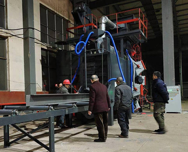 在对零件进行抛丸清理时,能使零件在抛射流中不断更换被请表面,以达到均匀抛丸要求的设施称为抛丸设备,或称抛丸机械。因被清件千变万化,所以青岛机械有限公司的抛丸机亦多种多样。某一规格的抛丸设备,只适用于一定范围内零件清理用。而专用设备,则适用于某一种零件。