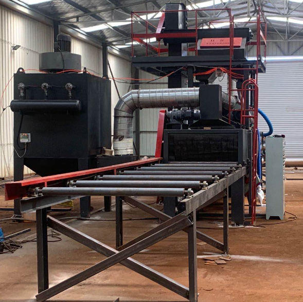 脚手架抛丸清理机主要是针对各种建筑桥梁这些领域当中的大规模工字型钢结构件表面进行的除锈清理,可以搭配喷漆、流平、烘暖等设备同时进行,采用的都是高抛射效率的直连悬臂离心式抛丸器,除尘利用的脉冲滤筒除尘器加沉降室除尘效果,可以实现工装输送驱动采用双向传动。