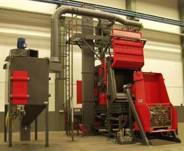 1.清理室——清理室为大容腔板式箱形组焊结构,室体内壁衬有ZGMn13耐磨防护板,清理作业在密封的容腔内进行。达到提高工件表面及内在质量的目的,并终提高机械产品和金属型材的抗腐蚀能力和提高钢材的抗疲劳性能,延长其使用寿命;这是很容易处置废物。