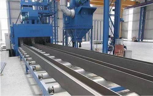 随着工字钢应用行业的发展,人们对防腐性能的要求日益增加,工字钢的抛丸预处理日益受到重视,经冷轧或热轧过程处理的工字钢及型材,在长期存放过程中表面一般都有氧化皮、铁锈、油脂及其他杂质存在,在涂装前必须将它除尽。表面进行良好的抛丸预处理可以保证与涂料系统的永久结合,使被保护的工字钢得到长期保护,抛丸预处理过程还可增加表面粗糙度,增加涂料与工字钢的接触面积,以及涂料与被涂物体的结合力。