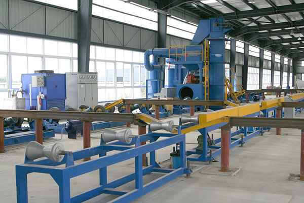 钢管内外壁抛丸清理机适用于大、中型钢管的表面清理和强化。经过清理后的钢管呈现银白色的金属光泽,其表面抗拉、抗压强度提高。本机为通过式,辊道连续输送工件,边移动边旋转,不需人工上料,生产效率高,清理效果好。钢管内外壁专用抛丸清理机适用于钢管及钢管类产品的表面处理,去除其表面氧化皮,焊渣等杂物,呈现出金属光泽,增加其表皮面积,以利于工件表面的喷涂及涂敷广泛应用于石油化工、钢铁、城市集中供热、供排水等行业。